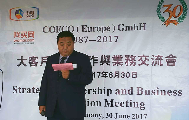 6月30日,公司董事长杨广富受邀赴德国参加中粮(欧洲)有限公司30年庆典活动并发表战略合作讲话。